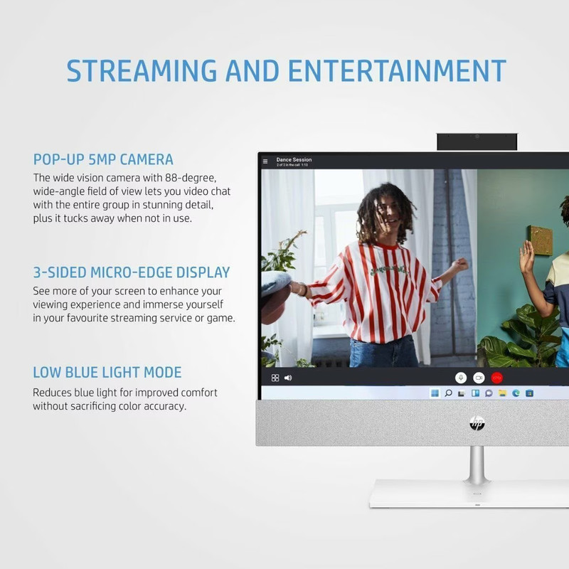 کامپیوتر آل این وان اچپی مدل HP Pavilion 24-CA2187NH یک سیستم یکپارچه با طراحی زیبا و کارایی بالا است که برای کاربریهای مختلف از جمله کارهای روزمره، مالتیمدیا و حتی بازیهای متوسط مناسب میباشد. مشخصات فنی این دستگاه شامل:پردازنده: Intel® Core™ i5-13400T با ۱۰ هسته و فرکانس پایه ۱.۸ گیگاهرتز که تا ۴.۵ گیگاهرتز افزایش مییابد.حافظه رم: ۸ گیگابایت از نوع DDR4، قابل ارتقاء تا ۱۶ گیگابایت.حافظه داخلی: ۵۱۲ گیگابایت SSD از نوع PCIe NVMe که سرعت بالایی در بوت و اجرای برنامهها فراهم میکند.کارت گرافیک: NVIDIA GeForce RTX 3050 با ۴ گیگابایت حافظه اختصاصی، مناسب برای کارهای گرافیکی و بازیهای متوسط.صفحه نمایش: ۲۳.۸ اینچ با دقت Full HD (1920x1080) و پنل ضد انعکاس برای کاهش خستگی چشم.دوربین: دوربین ۵ مگاپیکسلی HP True Vision با مکانیزم پاپآپ برای حفظ حریم خصوصی.صدا: بلندگوهای دوگانه با کیفیت صدای B&O برای تجربه صوتی بهتر.این دستگاه همچنین دارای ویژگیهای مفیدی مانند فیلتر نور آبی کم، نمایشگر بدون فلیکر و استفاده از پلاستیکهای بازیافتی در ساختار خود است که نشاندهنده توجه به سلامت کاربر و محیط زیست میباشد.ا توجه به مشخصات فوق، HP Pavilion 24-CA2187NH گزینهای مناسب برای کاربرانی است که به دنبال یک سیستم یکپارچه با کارایی بالا و امکانات متنوع هستند.