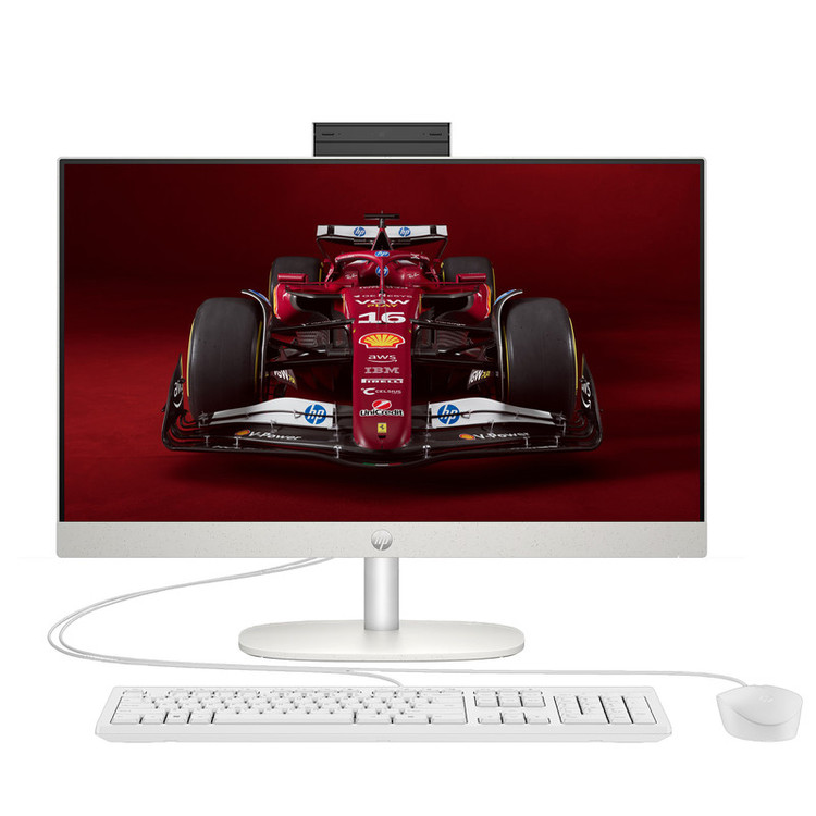 اقلام همراه : کیبورد موس USB سفید رنگ اچ پی / ماژول سیم جمع کن پایه / پایه با قابلیت تنظیم زاویه دید / آداپتور و سیم برق