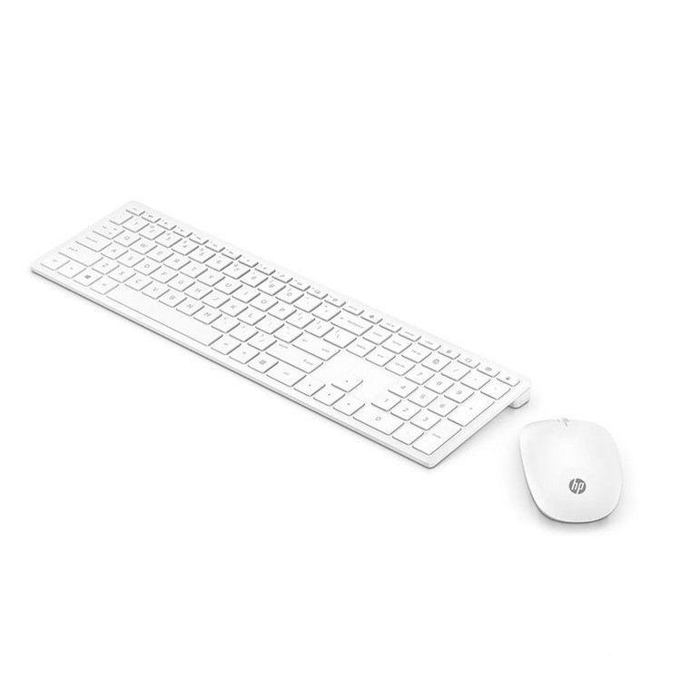 اقلام همراه : کیبورد و ماوس بدون سیم سفید رنگ HP با برد ۱۰ متر / کابل برق / آداپتور