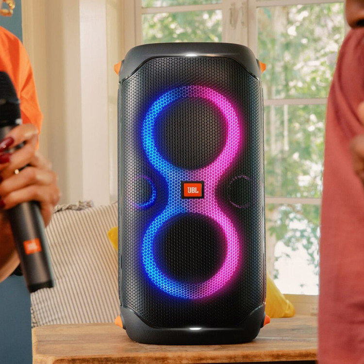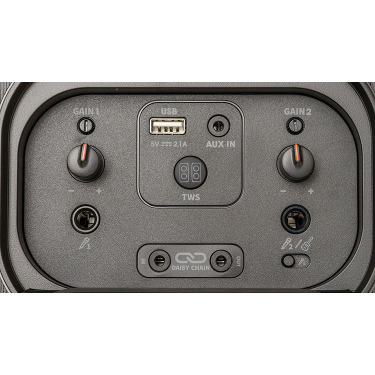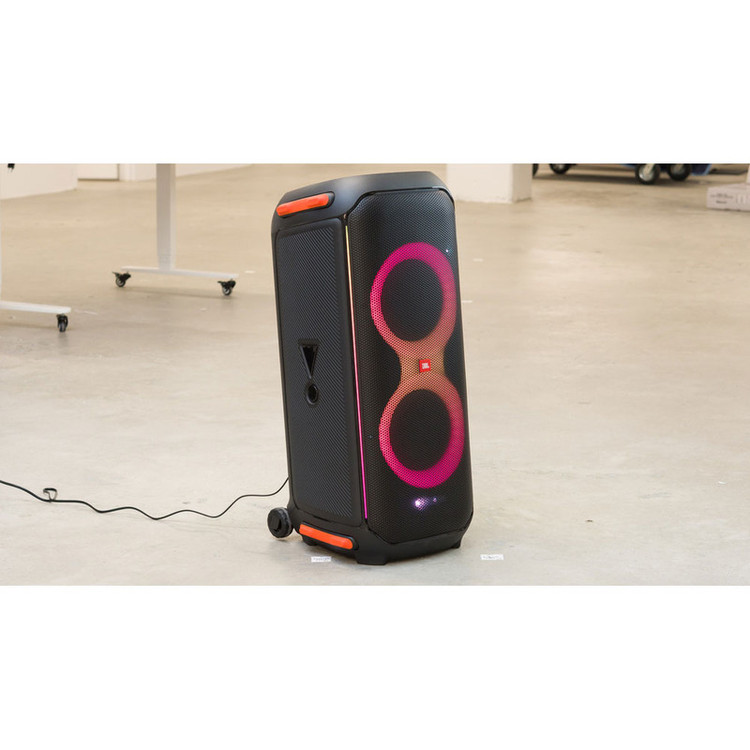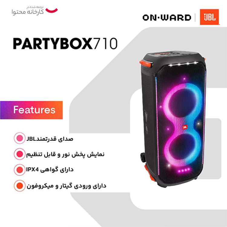 سایر توضیحات : دارای دو عدد ووفر و دو عدد توییر / دو کانال صوتی / آمپلیفایر اکتیو / دارای تکنولوژیهای BLE(Bluetooth low energy) و BassUp و JBL Pro Spund / دارای برنامه اختصاصی JBL Partybox