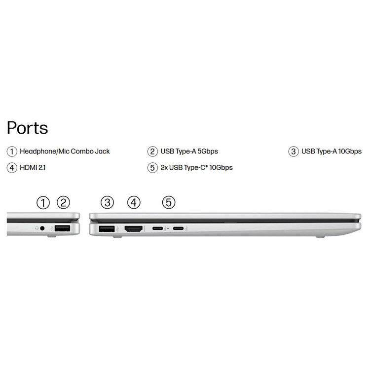تعداد پورت USB Type-C : دو عدد (با سرعت ۱۰ گیگابیت بر ثانیه، پشتیبانی از شارژ Power Delivery ۳.۱، پشتیبانی از HP Sleep and Charge و خروجی تصویر DisplayPort ۱.۴a)