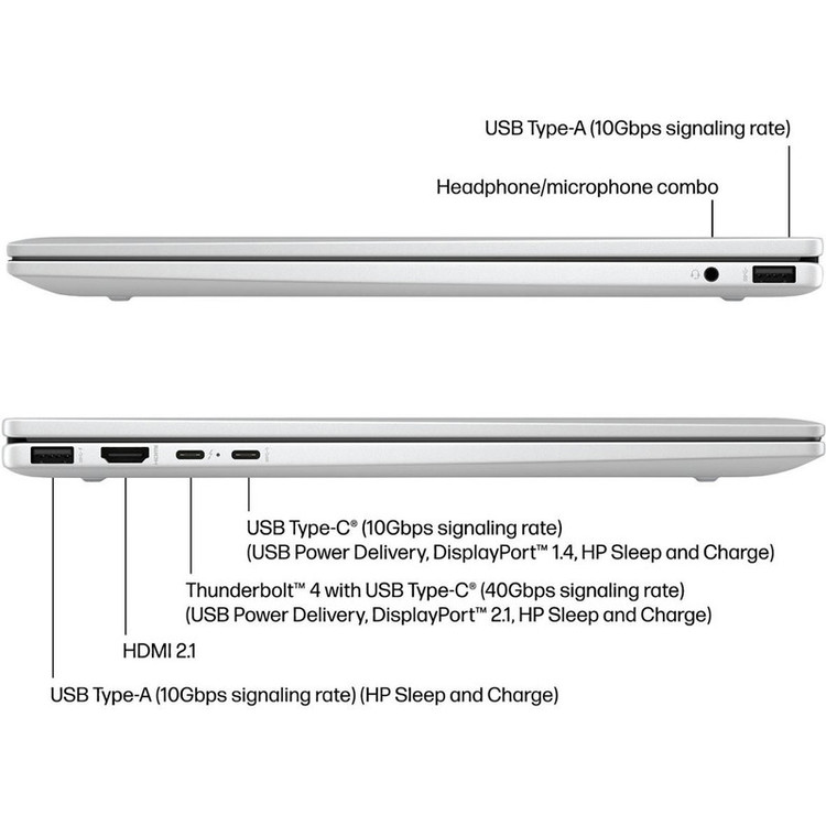 تعداد پورت USB Type-C : دو عدد (یک عدد با سرعت 10 گیگابیت بر ثانیه با پشتیبانی از شارژ و DisplayPort 1.4 و HP Sleep and Charge - یک عدد Thunderbolt 4 با پشتیبانی از شارژ و DisplayPort 2.1 و HP Sleep and Charge)