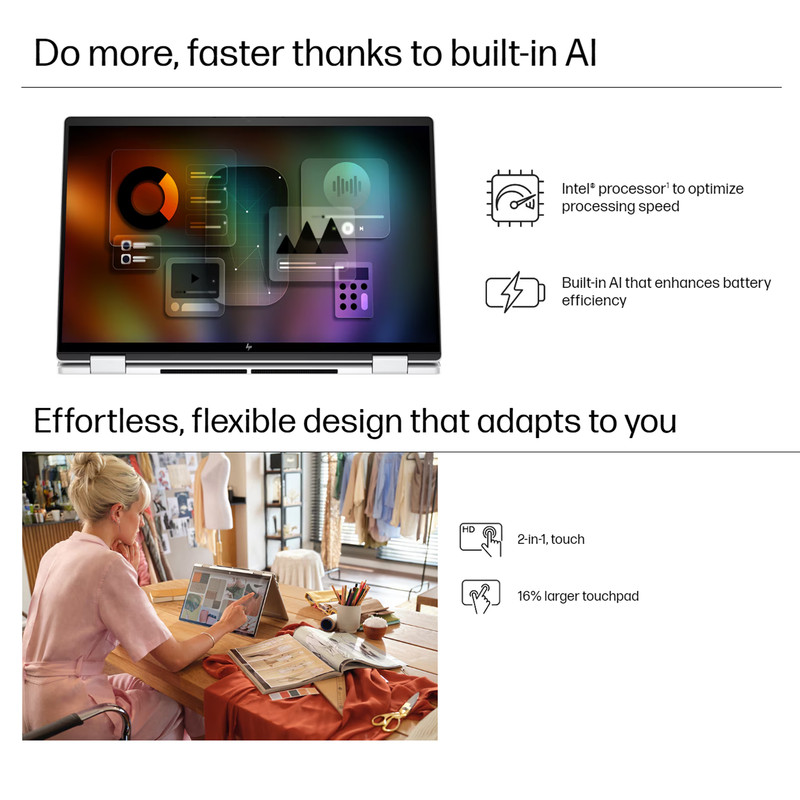 قابلیتهای دستگاه : صفحه نمایش لمسی , کیبورد با نور پس زمینه , وبکم , امکان چرخش 360 درجه