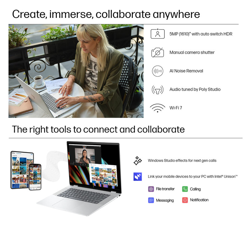 مشخصات اسپیکر : دو عدد اسپیکر DTS:X Ultra ساخت کمپانی Poly Studio به همراه تکنولوژی HP Audio Boost