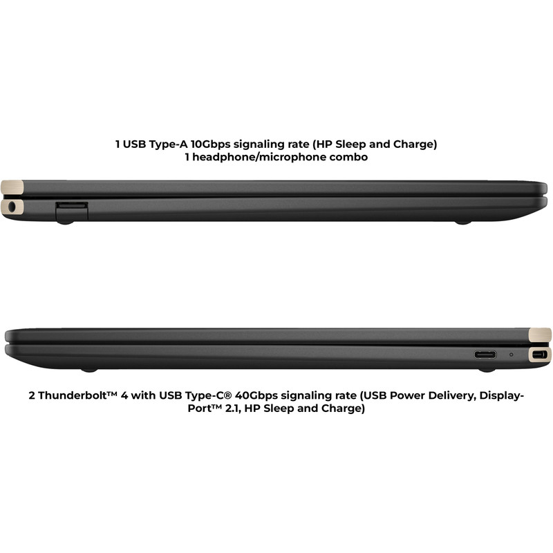 تعداد پورت USB Type-C : دو عدد (از نوع Thunderbolt 4 سرعت 40 گیگابیت بر ثانیه با پشتیبانی از شارژ Power Delivery و DisplayPort 2.1 و تکنولوژی HP Sleep and Charge)