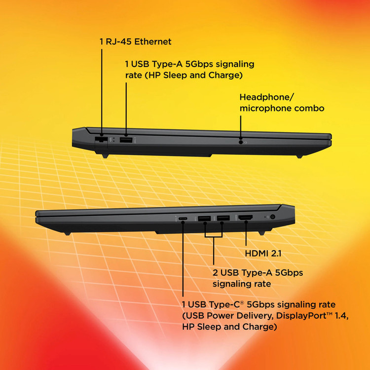 تعداد پورت USB 3.2 : سه عدد (سرعت ۵ گیگابیت بر ثانیه، یک درگاه با پشتیبانی از HP Sleep and Charge)